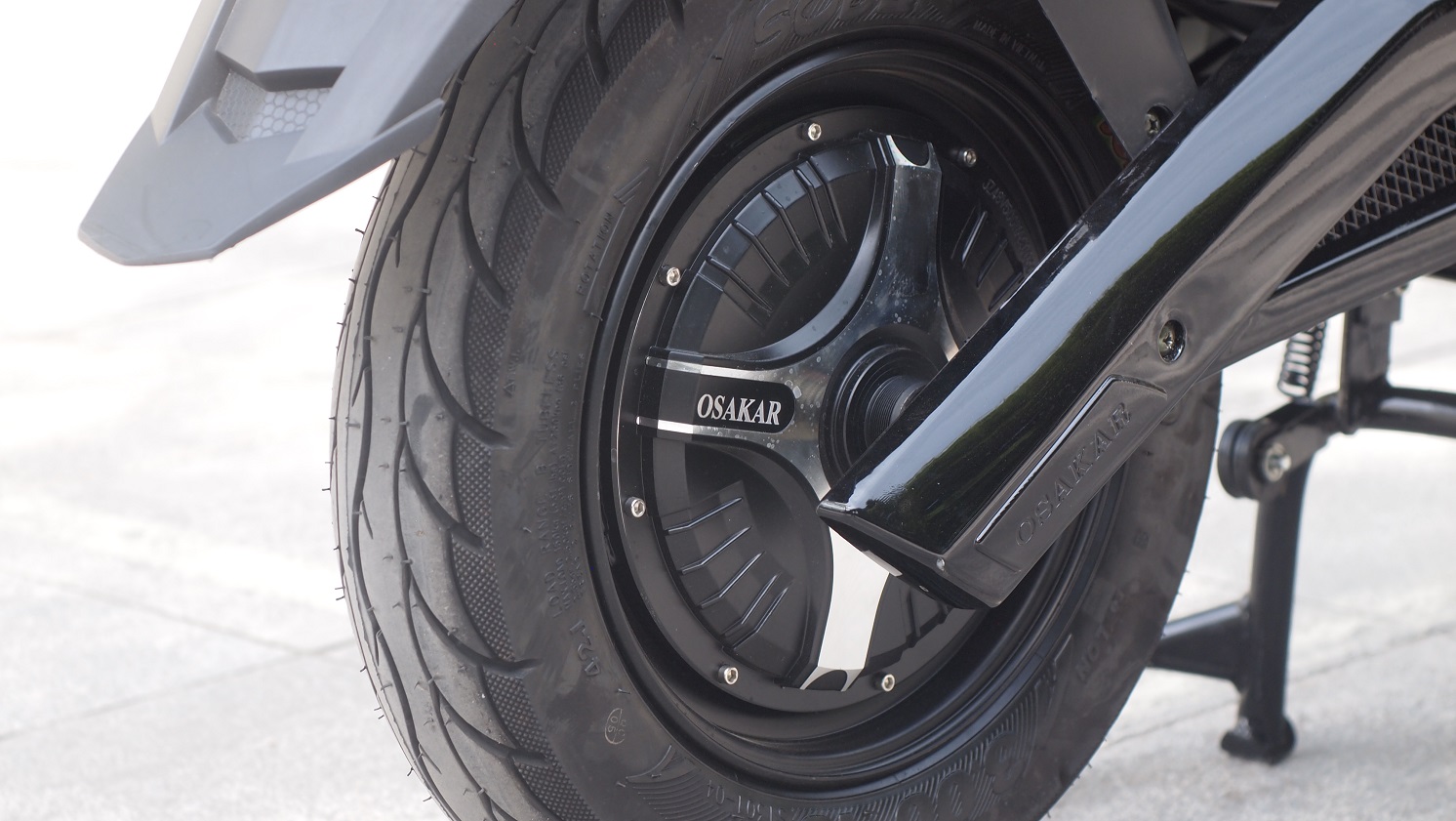 Bánh xe lớn, lốp không săm tiết diện rộng mang đến cảm giác lái cân đối, chắc chắn, và an toàn trong điều kiện mưa ướt, đường trơn trượt.